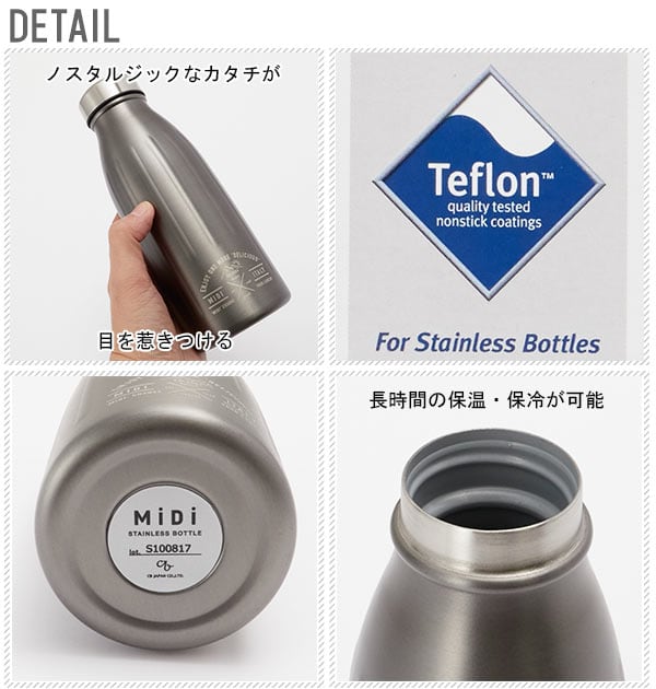 ステンレスボトル MiDi ミディ 通販 マグボトル midi 350ml 保冷 保温 直飲み マイボトル テフロン加工 コーヒーボトル かわいい おしゃれ スリム コンパクト ミルク瓶型 真空二重構造 マイ水筒 軽量 軽い ステンレス ボトル CBジャパン シービージャパン