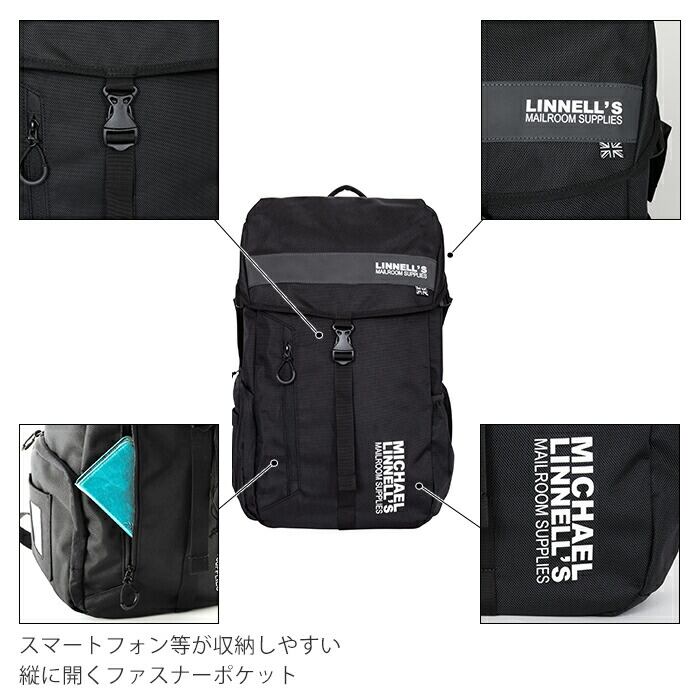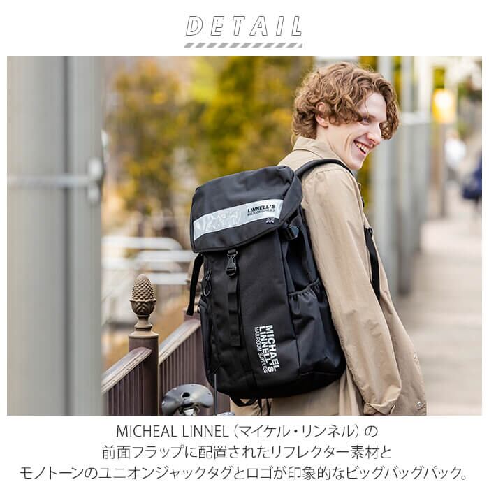 リュック メンズ 大容量 通販 ブランド MICHAEL LINNELL マイケルリンネル Big Backpack ビッグバックパック 30L 大学生 社会人 リュックサック レディース 男女兼用 黒 ブラック 通学 通勤 シンプル ロゴ おしゃれ かわいい リフレクター 反射 ノートPC タブレット