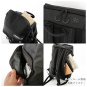 ・リュック外側両サイドには、それぞれファスナーポケット×1と、オープンポケット×1。ファスナーポケット側には、透明窓のついたICカードポケットが付き、オープンポケットは500mlペットボトルを収めるのにちょうどいいサイズ。