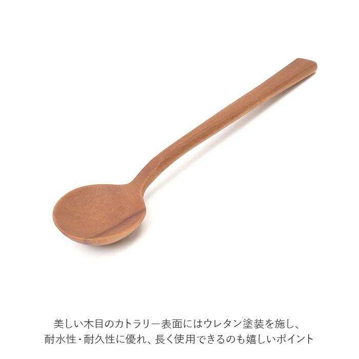 ・美しい木目のカトラリー表面にはウレタン塗装を施し、耐水性・耐久性に優れ、長く使用できるのも嬉しいポイント。