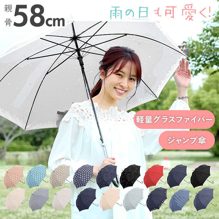長傘 レディース おしゃれ 通販 58cm ジャンプ傘 グラスファイバー骨 丈夫 シンプル かわいい ベーシック きれいめ 上品 プチギフト 通勤 通学 婦人傘 女性用 傘 Natural basic