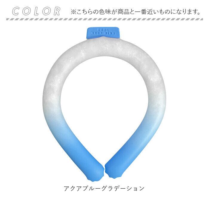 ・身体全体を冷やすには、首すじの血液を冷やすことが効果的。アクアブルーのリングを首にフィットさせるだけで、ひんやりクールダウン。(※28度以下で装着後、約1時間〜1時間半程度冷たさが持続)