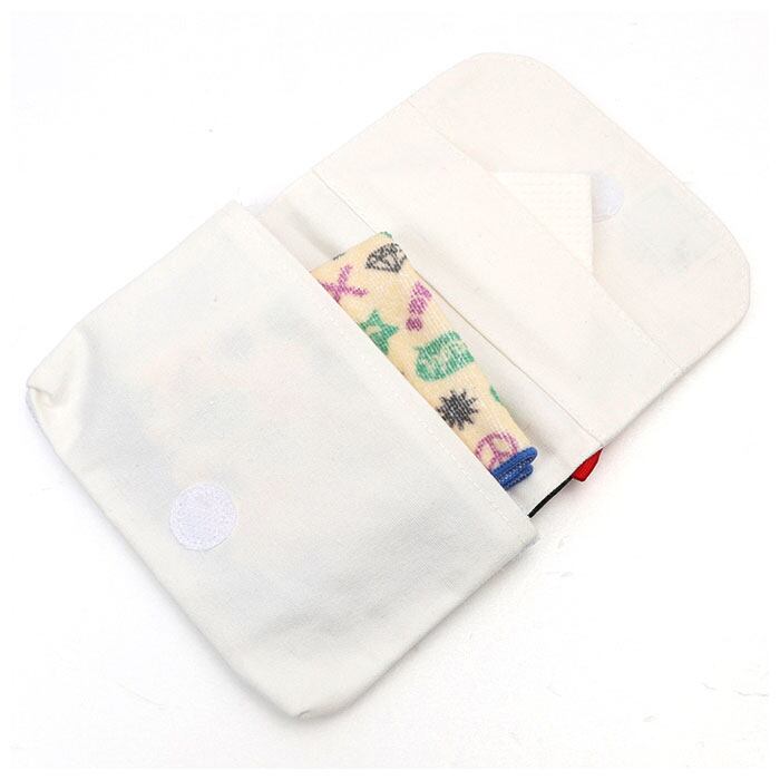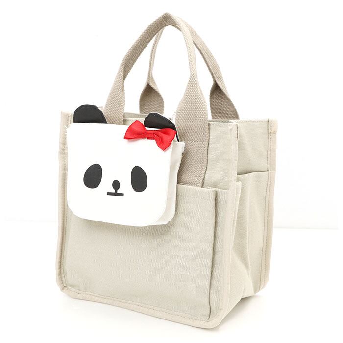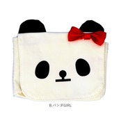 ・パンダさんのお顔が描かれたフラップは、面ファスナーでサッと開閉。フラップ裏側がポケットティッシュ専用ポケットになったユニークなつくり。