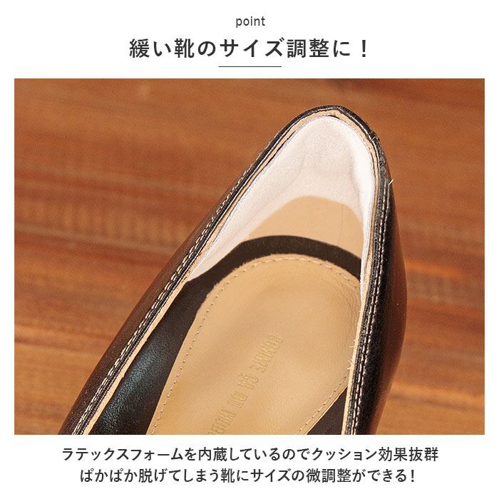 ・ラテックスフォームを内蔵しているのでクッション効果抜群。ぱかぱか脱げてしまう靴にサイズの微調整ができる!