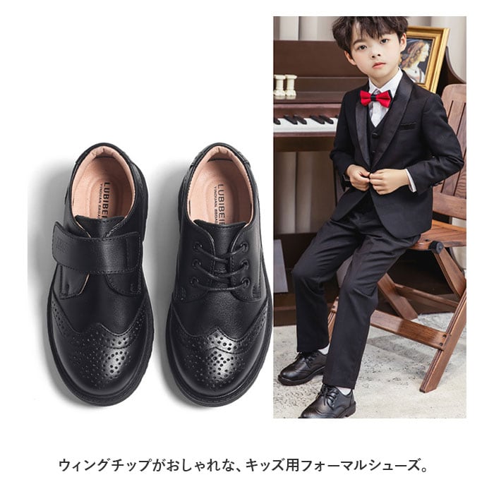 ・ウィングチップがおしゃれな、キッズ用フォーマルシューズ。