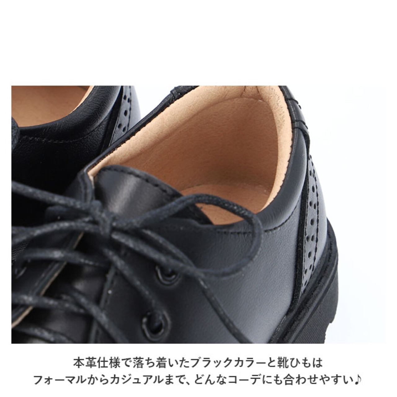 ・本革仕様で落ち着いたブラックカラーと靴ひもはフォーマルからカジュアルまで、どんなコーデにも合わせやすい♪