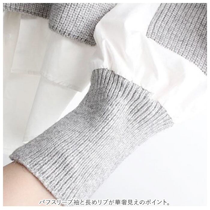 ・パフスリーブ袖と長めリブが華奢見えのポイント。
