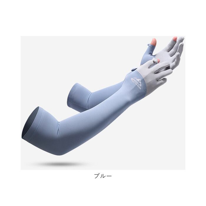 ・汗ばむ季節に、ひんやり心地よいさらりとした着用感♪体感温度が下がる効果も♪指先まですっぽりカバーする手袋タイプなので、指先の日焼け対策にも◎