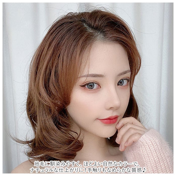 ・地毛に馴染みやすく、ほどよい自然なカラーで、ナチュラルな仕上がりに!手触りもなめらかな質感♪