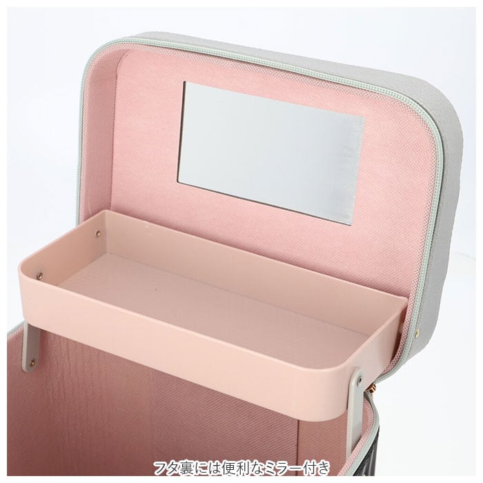 ・フタ裏には便利なミラー付きなので、一人暮らしのお部屋でも、このコスメボックスを広げればどこでもドレッサーに早変わり!
