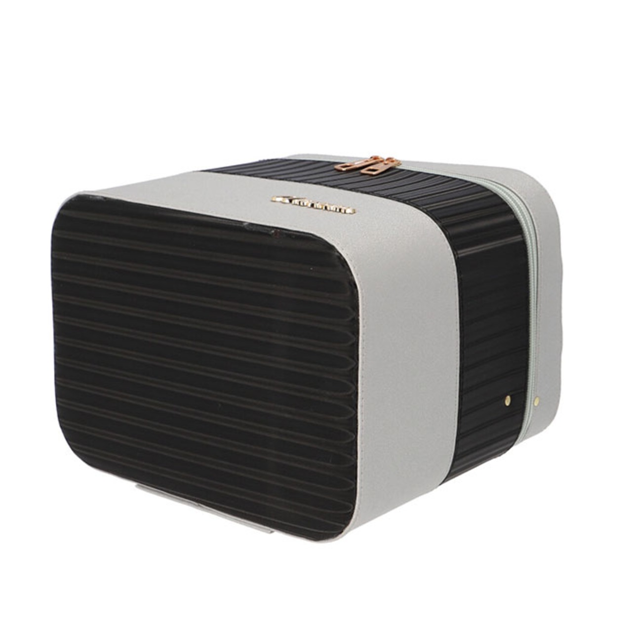 ・立体的で見やすいコスメトレイ付き♪ホログラムレザーがインテリアに華やかさを添える、シンプルメイクボックスが新登場。