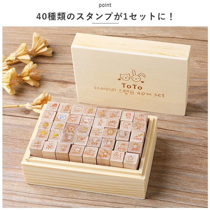 ・40種類のスタンプが1セットに!ハングルや英語を取り入れたキュートなデザインが魅力。