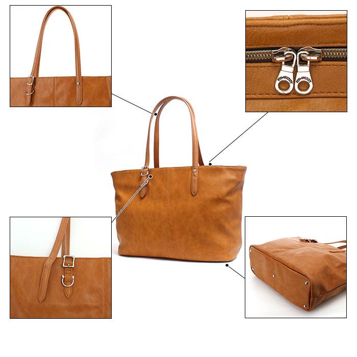 ・ハンドル部分はリアルレザーを使用。長めに設計されており、ジャケットを着た状態でも肩掛け持ちができる絶妙な長さ。