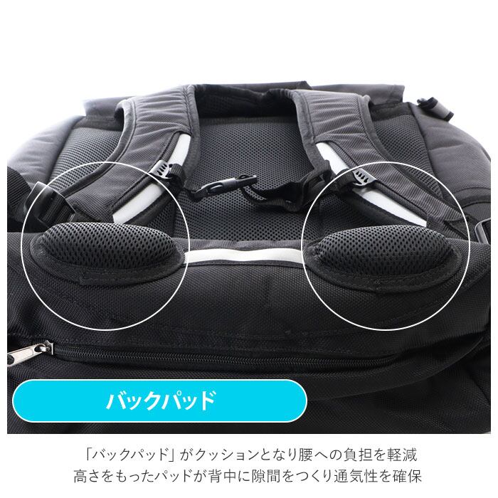 ・「バックパッド」がクッションとなり腰への負担を軽減。高さをもったパッドが背中に隙間をつくり通気性を確保。