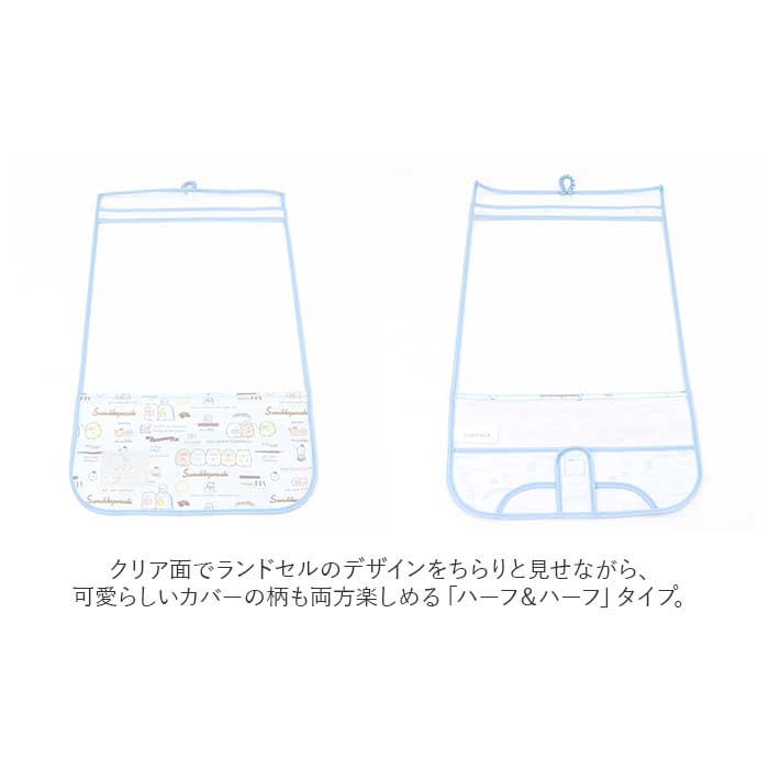 ・クリア面でランドセルのデザインをちらりと見せながら、可愛らしいカバーの柄も両方楽しめる「ハーフ&ハーフ」タイプ。