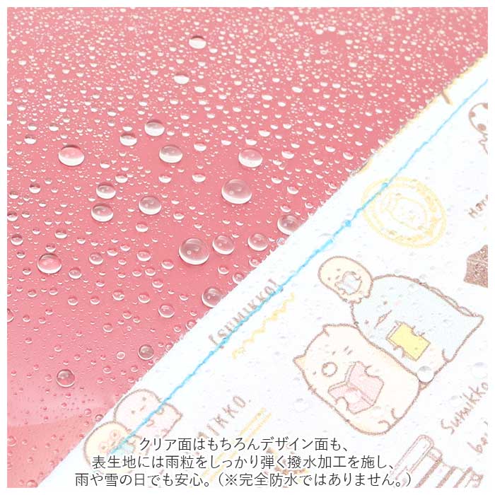 ・クリア面はもちろんデザイン面も、表生地には雨粒をしっかり弾く撥水加工を施し、雨や雪の日でも安心。(※完全防水ではありません。)