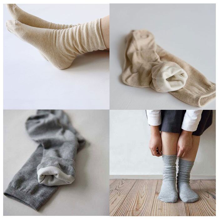 ・シンプルなデザインでモコモコしないので冷房の効いたオフィスや室内、お風呂上がりや就寝用の靴下としても!