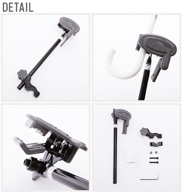 両手が使える自転車用傘スタンド♪雨傘も日傘もワンタッチで取付けられる優れもの!最初から前用子供乗せが付いている自転車(ハンドル一体型)や、あとから子供乗せシートを取り付けた自転車にも取り付けられます。自転車のサイドミラーのようにハンドルの左右どちらかに取り付けて下さい。