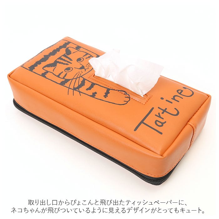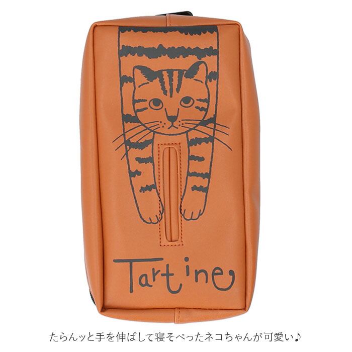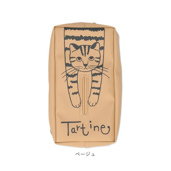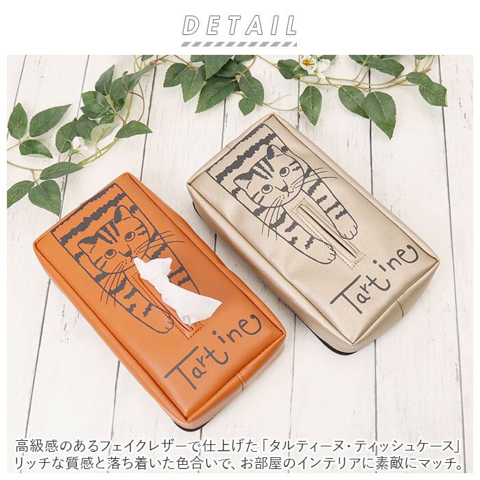 ・たらんッと手を伸ばして寝そべったネコちゃんが可愛い♪高級感のあるフェイクレザーで仕上げた「タルティーヌ・ティッシュケース」