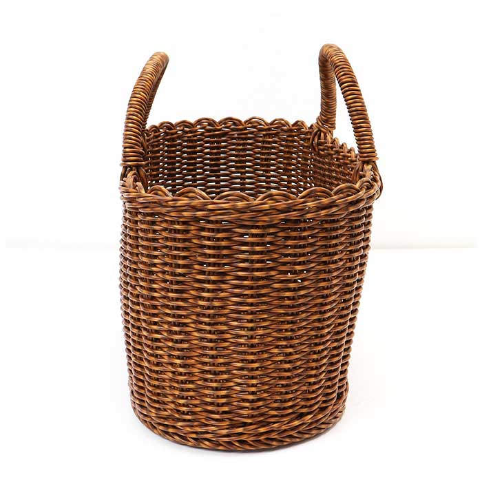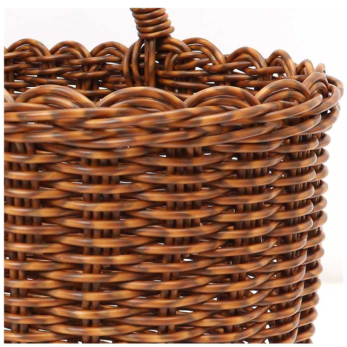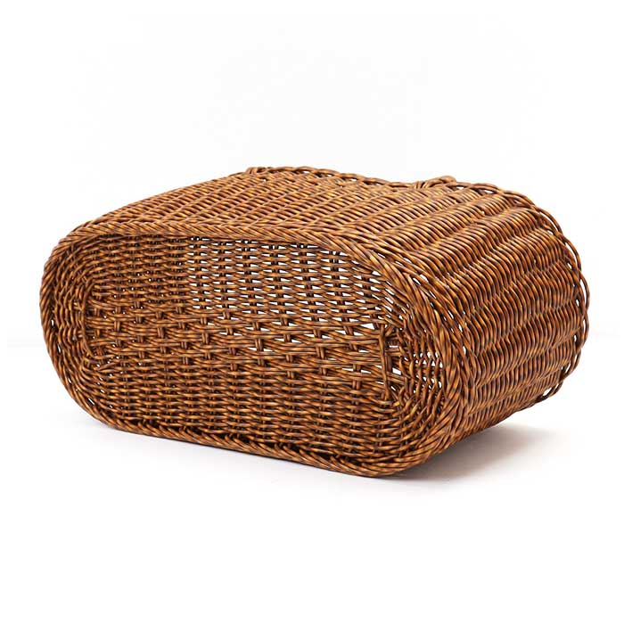 ・ポリプロピレンとポリエチレンを使った手編みのバスケット。ざっくり小物を入れて置いておくだけでもサマになり、見せる収納に最適。