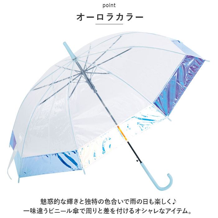 傘 レディース 透明 通販 60cm ビニール傘おしゃれ 雨傘 長傘 ジャンプ傘 ワンタッチ傘 かさ カサ オーロラ 大きめ グラスファイバー骨 丈夫 耐風 おしゃれ 8本骨 軽量 可愛い レイングッズ