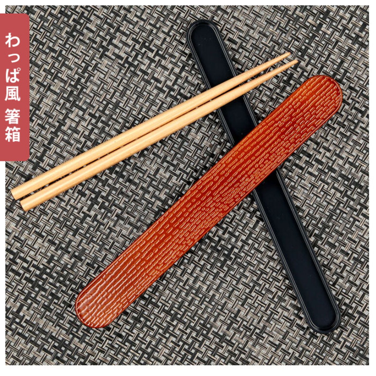 ・昔懐かしい、まるで曲げわっぱのような質感のお弁当箱!漆器職人が手塗りで仕上げた一段弁当箱「スリム」タイプに、お箸&木目調箸箱を合わせたお得な2点セット!