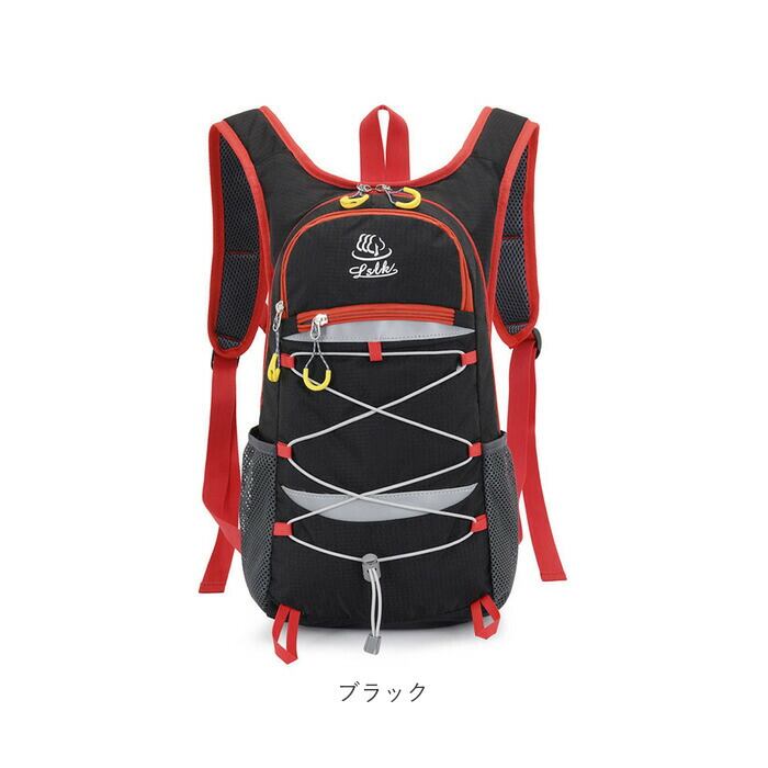 ・リュック外側両サイドには、500mlサイズのウォーターボトルや折りたたみ傘が収納できるメッシュポケット付き。