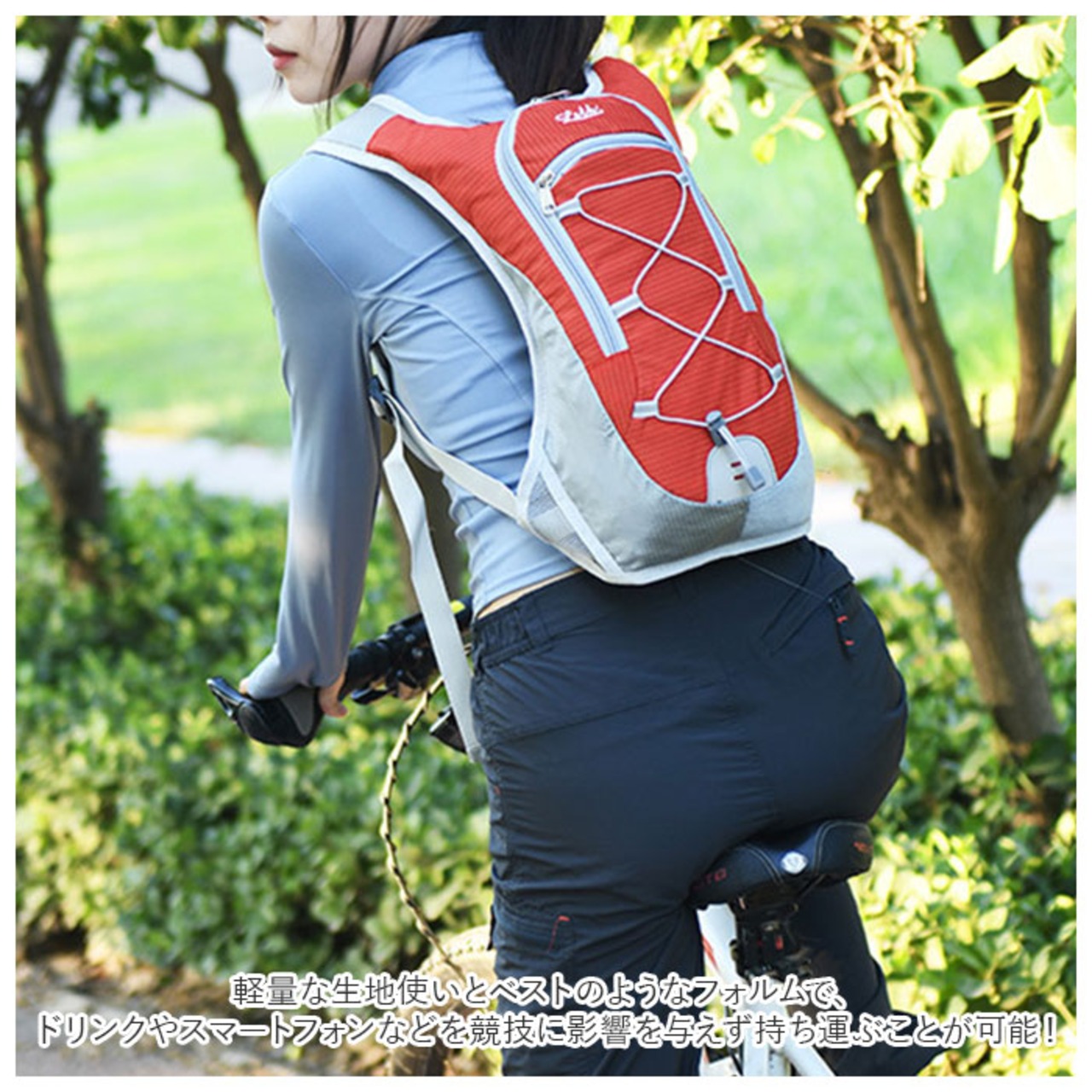 ・軽量な生地使いと、ベストのようなスタイリッシュなフォルムで、ドリンクやスマートフォンなどの必須アイテムを競技に影響を与えずに持ち運ぶことが可能!