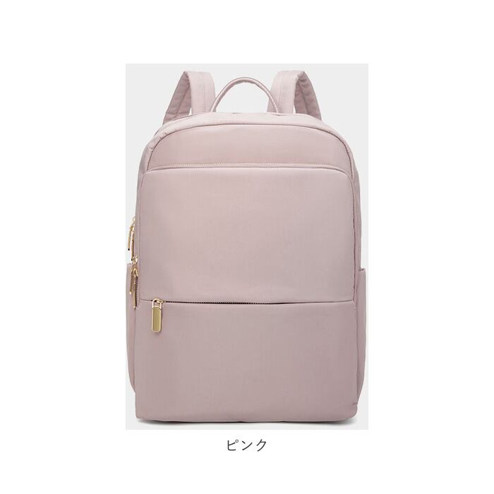 ・ほのかな光沢のあるナイロン生地に、ゴールドカラーの金具の輝きが映えるフェミニンなデザインも魅力のひとつ。通勤や通学はもちろん、タウンユースにも大活躍。