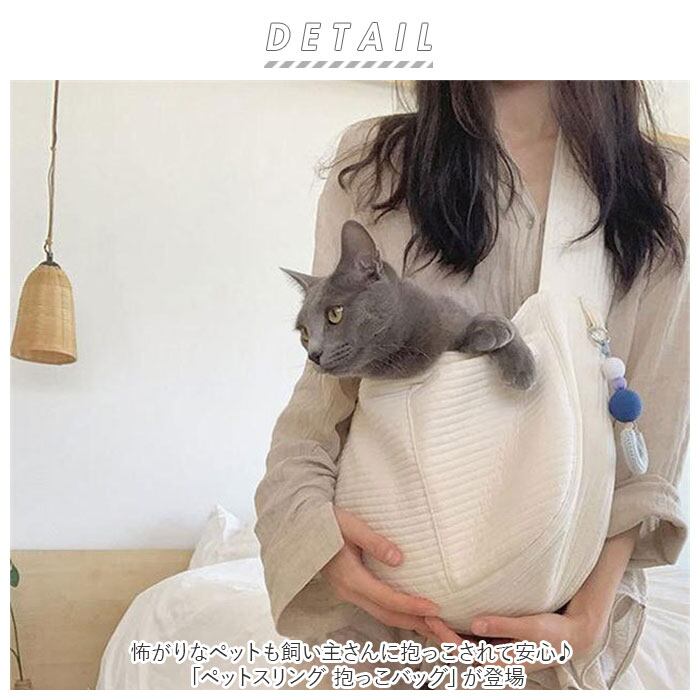 ・怖がりなペットも飼い主さんに抱っこされて安心♪「ペットスリング 抱っこバッグ」が登場。