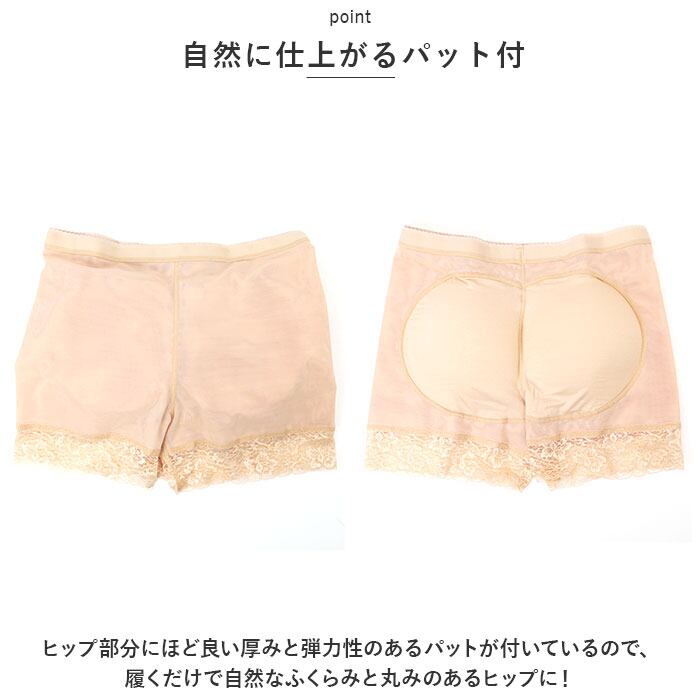 ・ヒップ部分にほど良い厚みと弾力性のあるパットが付いているので、履くだけで自然なふくらみと丸みのあるヒップに!