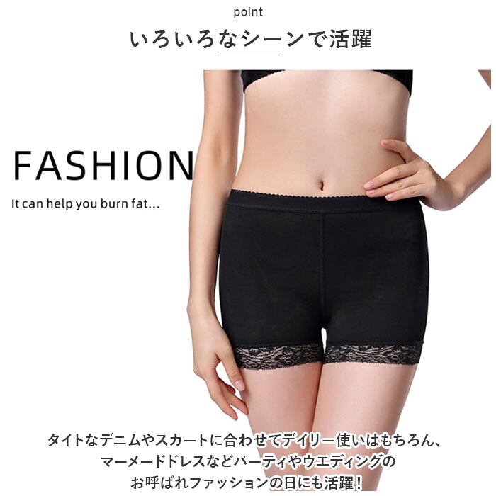 ・裾部分はレース素材になっているので、お洋服にひびきにくい!タイトなお洋服でも安心◎