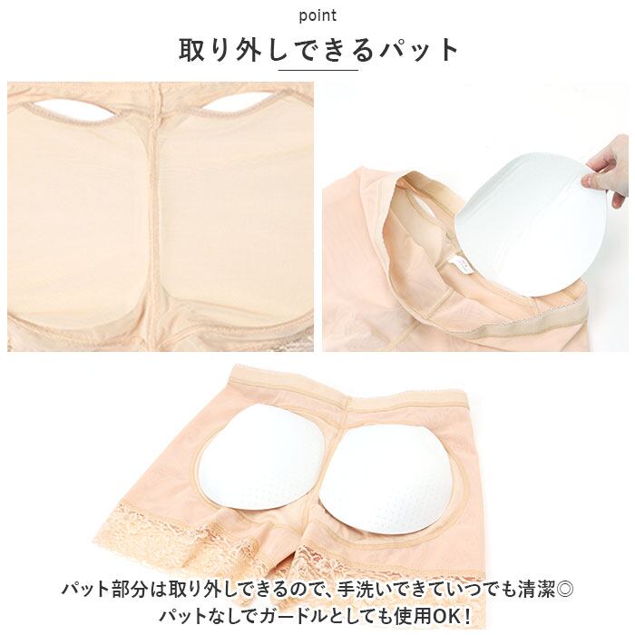 ・パット部分は取り外しできるので、手洗いできていつでも清潔◎パットなしでガードルとしても使用OK!