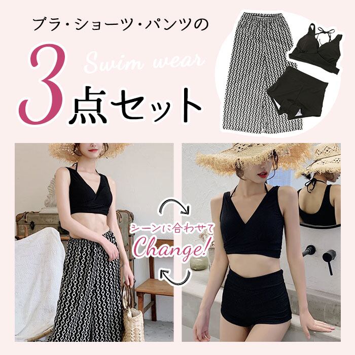 ・年代問わず着られる露出控えめなデザイン♪体型カバーもできちゃう水着3点セットが発売!