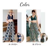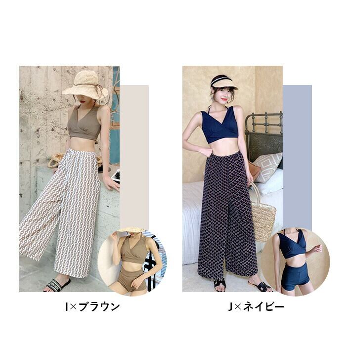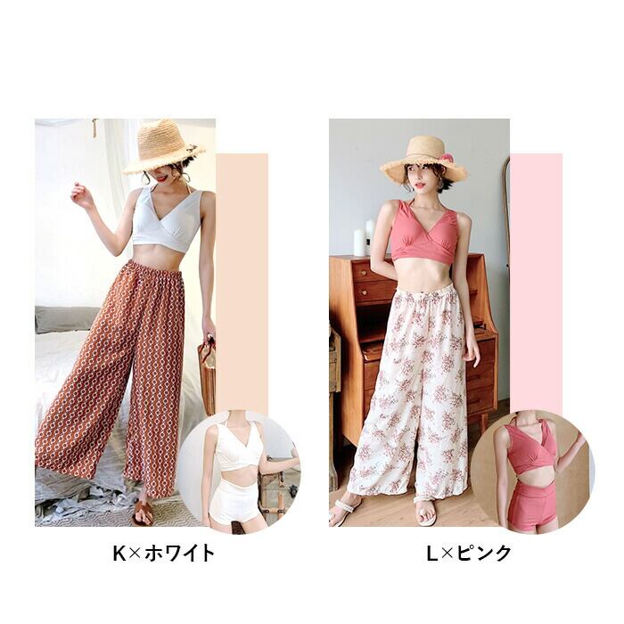・お尻や太ももをカバーできるロング丈のワイドパンツ。ウエストはゴム仕様でサッと穿きやすい!ビーチやプールはもちろん乾きやすい素材なのでタウンにも出られちゃう◎