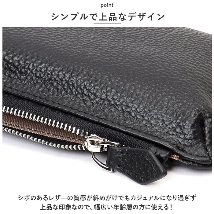 ・シボのあるレザーの質感が斜めがけでもカジュアルになり過ぎず上品な印象なので、幅広い年齢層の方に使える!