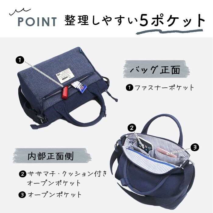 ・外側・内側合わせて5個のポケット付きで、小物をすっきり整理整頓♪
