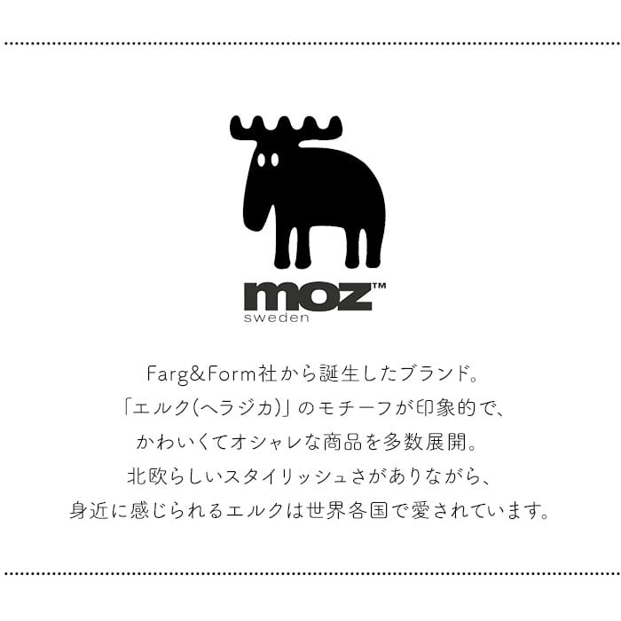 ・mozのトレードマーク「エルク」(ヘラジカ)のイラスト入りブランドロゴタグがアクセント。