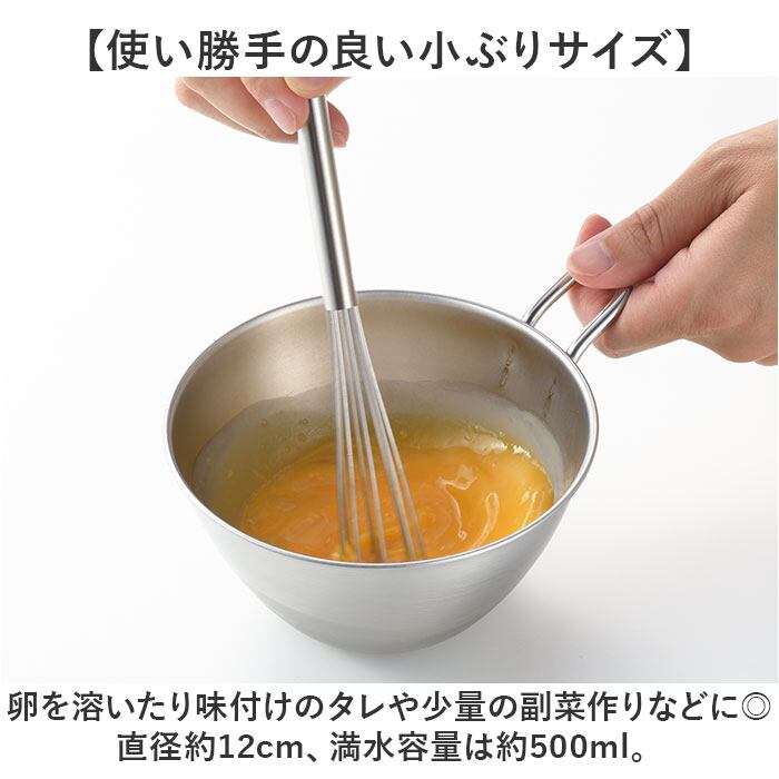・卵を溶いたり味付けのタレや少量の副菜作りなどに◎直径約12cm、満水容量は約500ml。