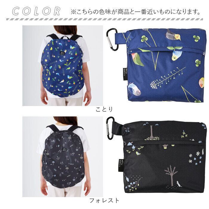 ・リュックなどの荷物にスポっとかぶせるだけでOK!ゴムを絞ってサイズ調節ができる◎
