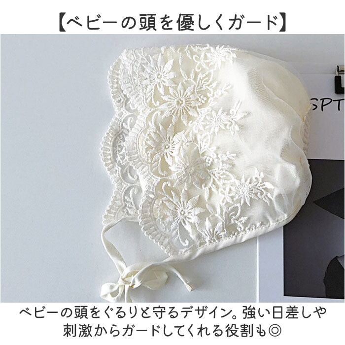 ベビー ボンネット 帽子 通販 ベビーボンネット 赤ちゃん帽子 ベビー帽子 キャップ ぼうし レース 2重 厚地 2重生地 ひも付き 女の子 男の子 男女兼用 赤ちゃん 上品 新生児 白 出産祝い かわいい 可愛い ニューボーンフォト ギフト