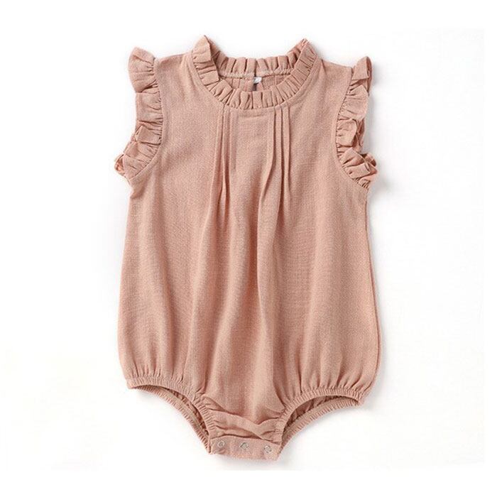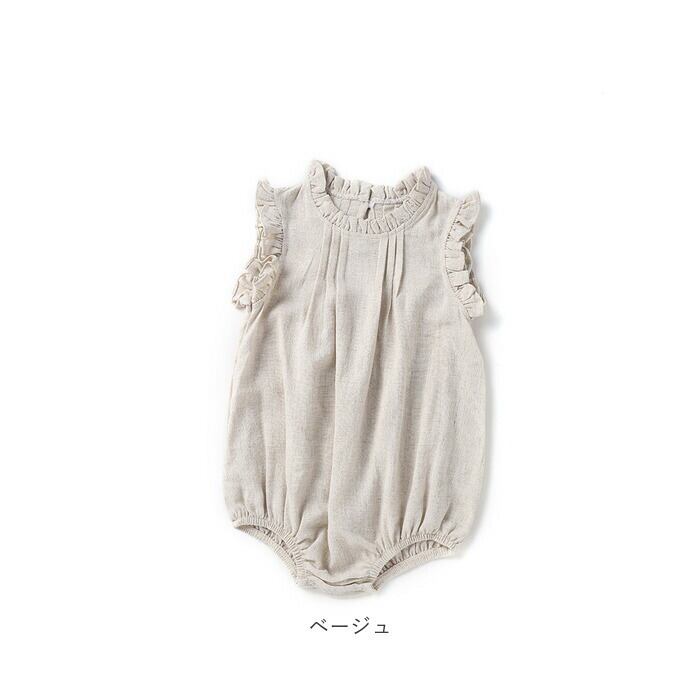 ・可愛いフリルがSNSで映える!コットンリネン素材で快適に過ごせる夏のロンパース☆出産祝いやお誕生日プレゼントにも最適、みんなに自慢したくなるデザイン★