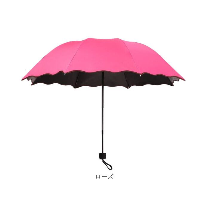 ・特殊な加工を施し雨に濡れるとお花の模様が浮かび上がる折りたたみ傘!