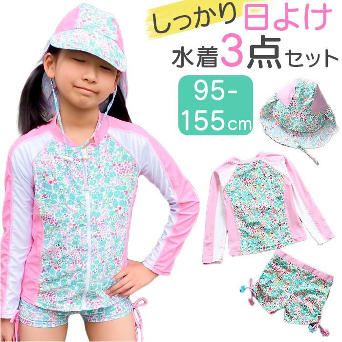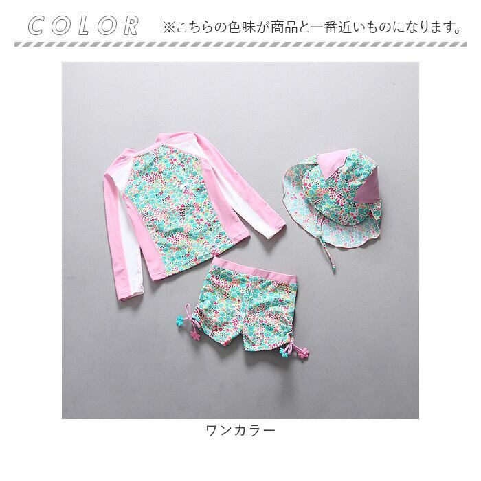 ・ツバ&ネックガード付きでしっかり日よけ!小花デザインがキュートなキッズ水着が登場。