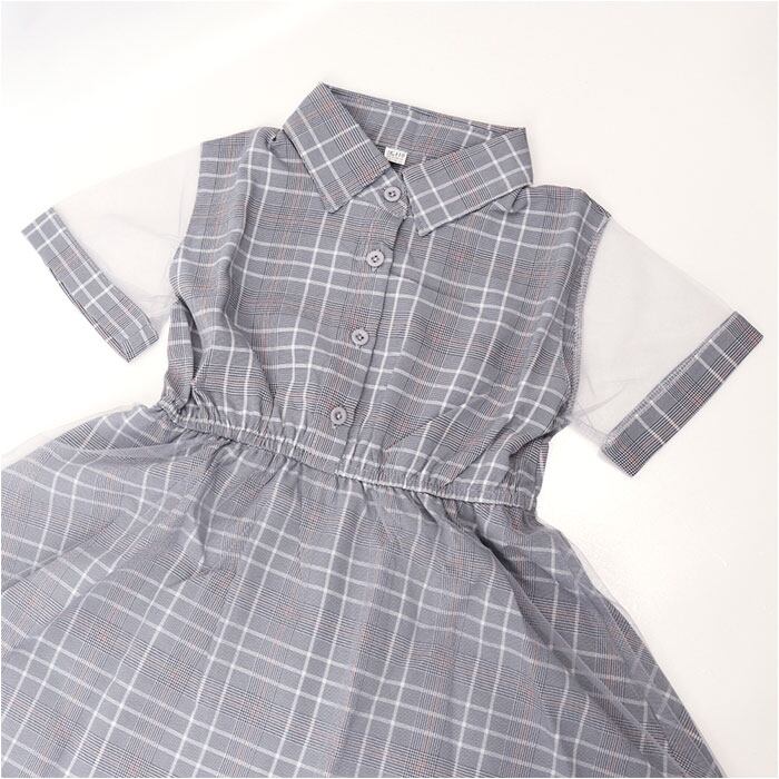 ・襟付きワンピできっちり感を出しつつ、シースルーでトレンド感をON。こなれた印象がGOOD!