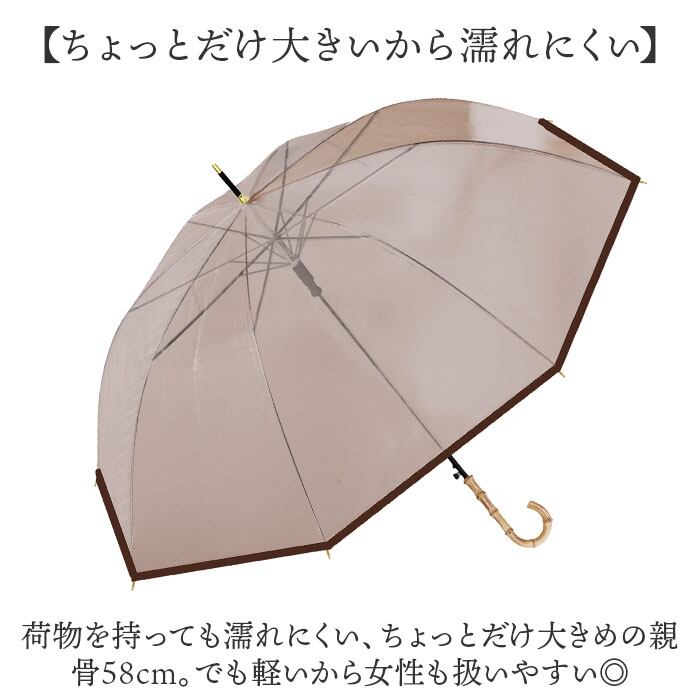・荷物を持っても濡れにくい、ちょっとだけ大きめの親骨58cm。でも軽いから女性も扱いやすい◎
