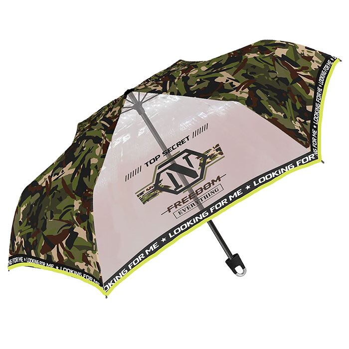 50cm 子ども折りたたみ傘 カラビナ手元 透明窓1面