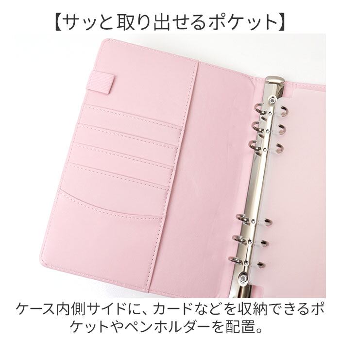 ・内側:カードポケット×5、フリーポケット×2、ペンホルダー×2