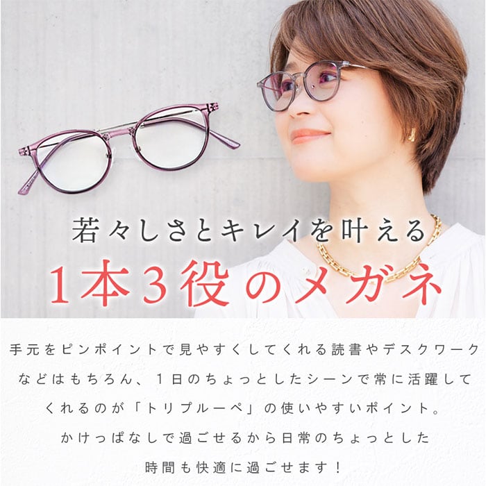 ・メガネを外したり、掛け替える動作が不要になり、クリアな視界と若々しい仕草を同時に叶える♪