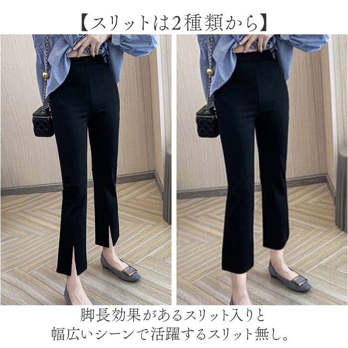 ・お好みで丈とスリット有無がチョイスできるフレアパンツが新発売♪